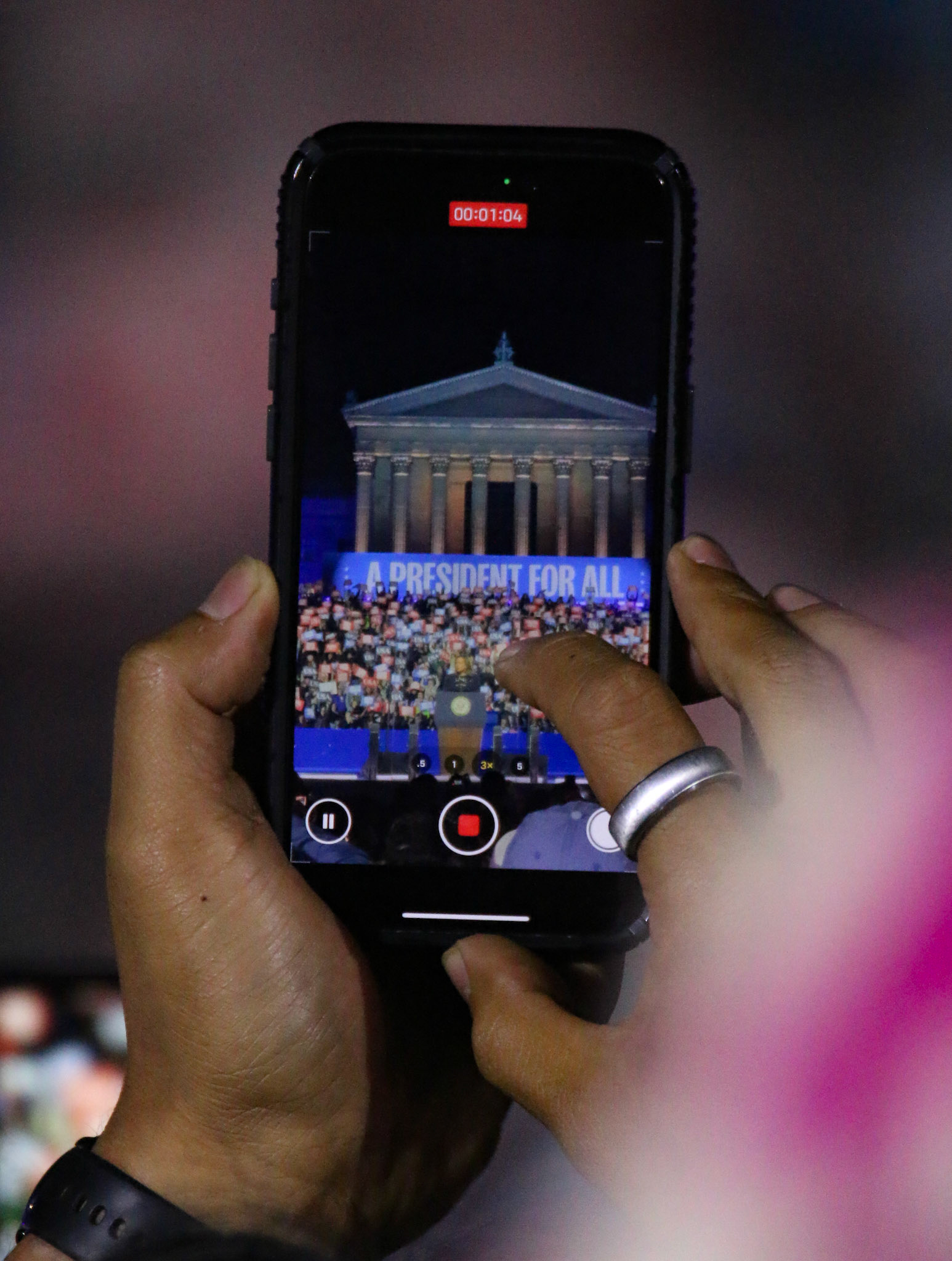 The rally, held near the Philadelphia Museum of Art, served as the campaign’s closing event in the critical battleground state of Pennsylvania, drawing large crowds who filled the parkway and surrounding streets. Supporters arrived hours before the program began, waving campaign signs and cheering as speakers encouraged voter turnout for Election Day.