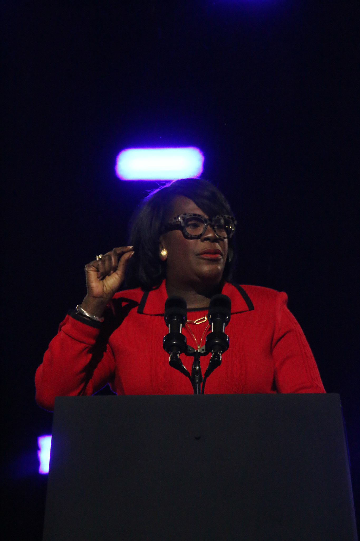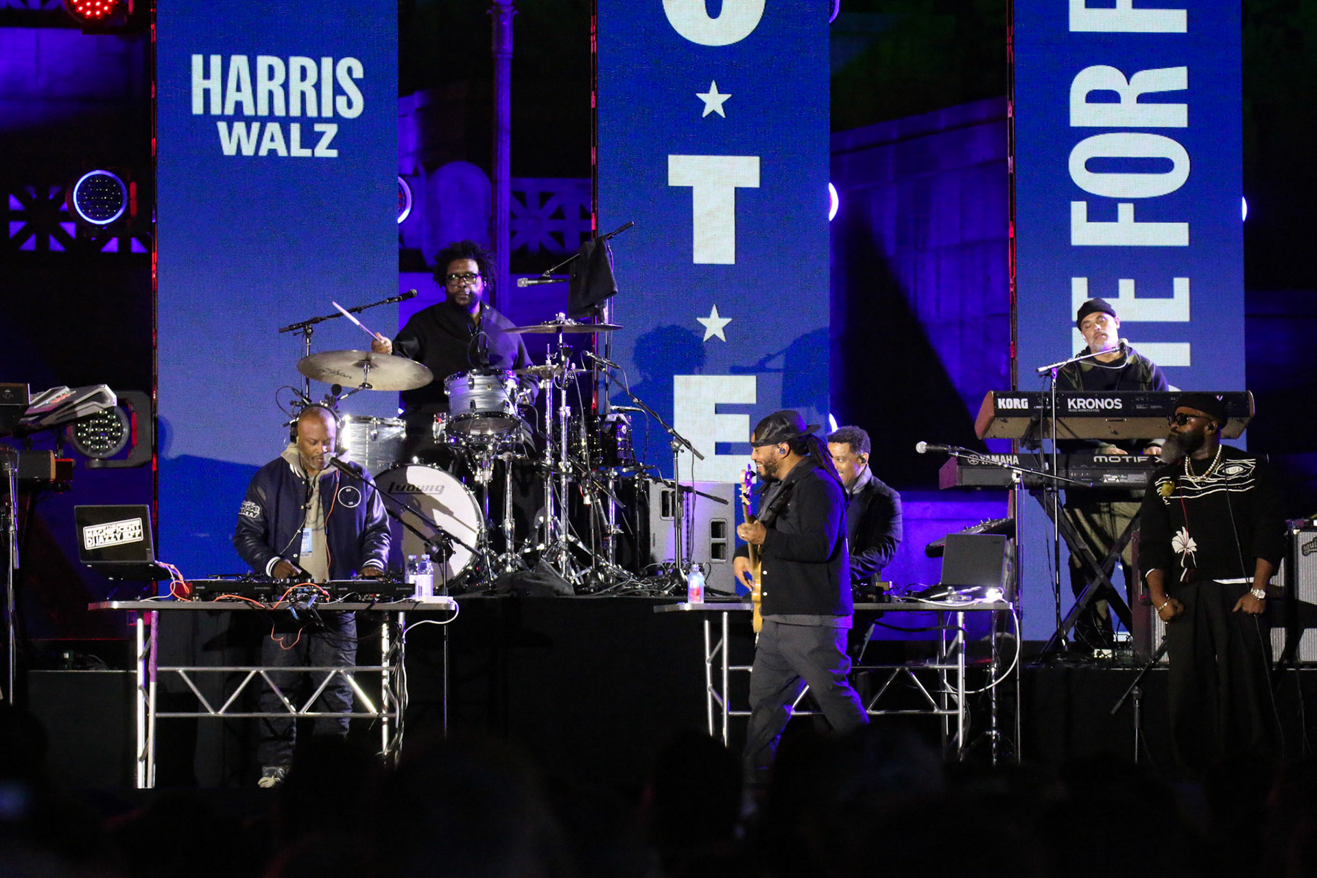 The event featured a rally-style atmosphere with music, energetic chants from supporters, and a festival-like environment throughout the parkway. Volunteers and campaign organizers worked throughout the evening to encourage attendees to remind friends and family to vote.